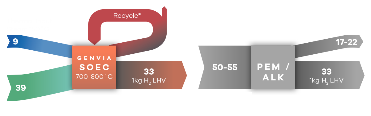 Genvia’s high efficiency solid oxide technology delivers more energy-efficient electrolysis performance when compared to existing PEM and alkaline-based systems.